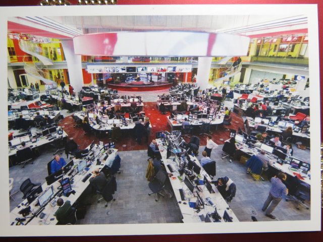 新聞室的後方就是主播台。所以BBC主播播報新聞時都會看到後方流動的新聞室一景。