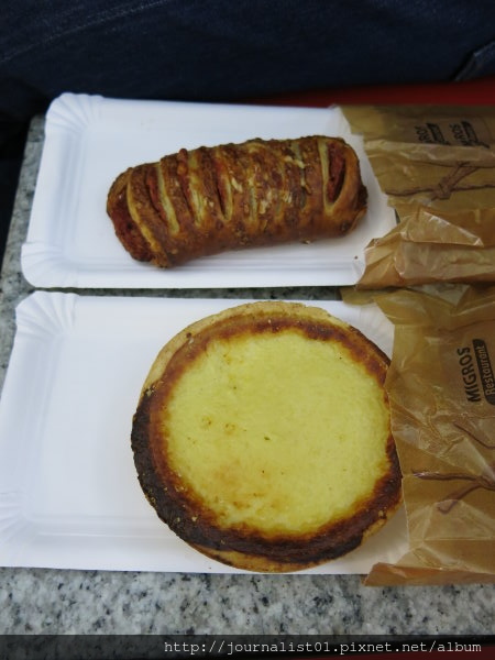 飛機餐很早就吃了,所以兩個人在車站的地下街某家超市買了麵包填肚子。