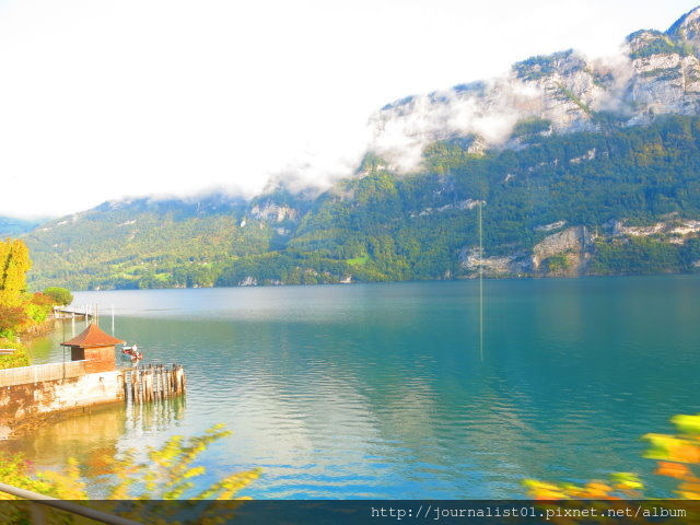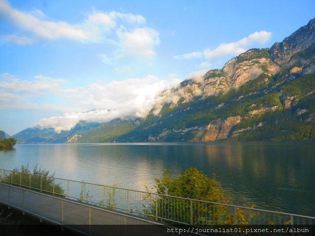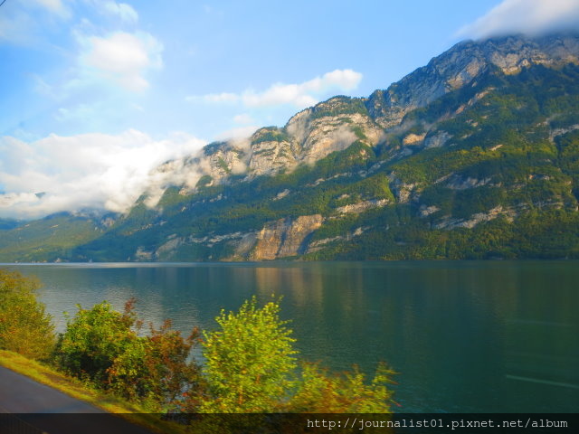 剛駛離車站的一段會經過狹長的蘇黎世湖,所以有一段漂亮個湖光水色可以看。