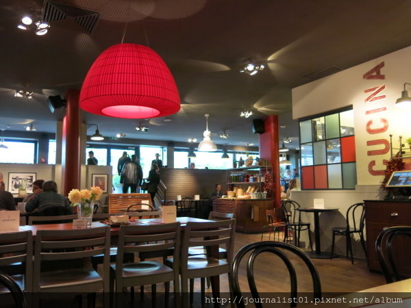 這邊有餐廳。餐廳上面還有一個纜車裝飾,好可愛。