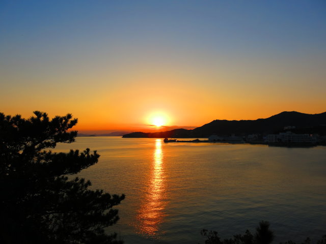 金黃色的夕陽灑在海面上,這景色說多浪漫就有多浪漫。