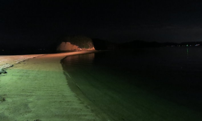 乾潮的前後兩小時是最佳觀賞期,晚上八九點,在暗幕中首次看到天使步道露臉。